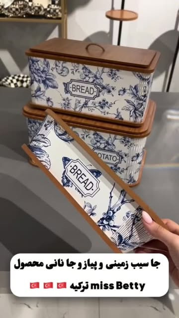شارژ مجدد جا سیب زمینی و پیاز و جا نانی محصول Miss Betty ترکیه، جنس: چوب بامبو و MDF، رنگ ثابت در دو طرح پر فروش Pradise و blue spring.