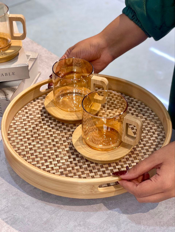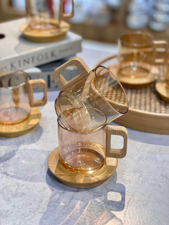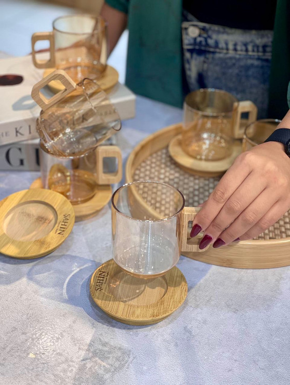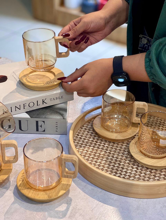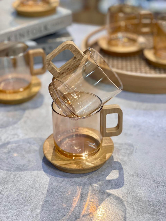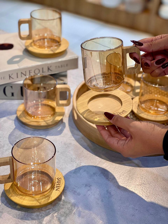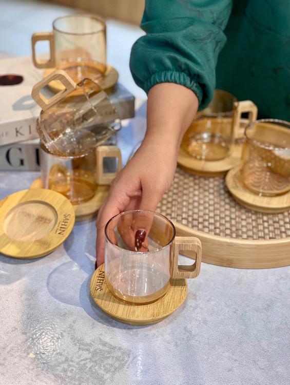 محصول ترکیه کاملا شعله مستقیم ساخته شده از بروسیلیکات(پیرکس حرارتی) 100% آنتی شوک حرارتی نعلبکی و دستگیره فنجان از جنس بامبو