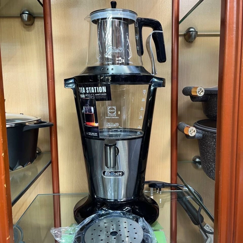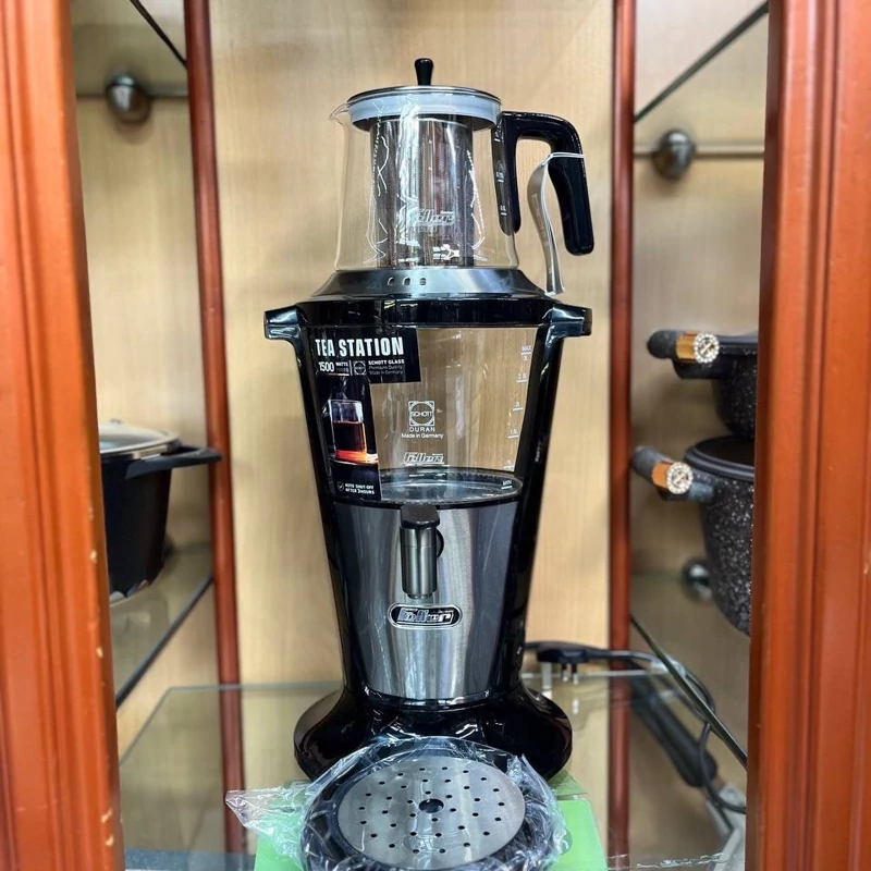 سماور برقی مدل TS380P از محصولات شرکت فلر (Feller) است که با آن به راحتی می توانید چای یا دم نوش مورد علاقه ی خود را تهیه کرده و برای مدتی طولانی گرم نگه دارید. در جنس بدنه و قطعات این محصول، دقت زیادی شده است. دستگاه به واسطه ی دستگیره های عایق و پلاستیکی، به راحتی قابل استفاده است. استفاده از شیشه و استیل ضدزنگ در بدنه ی سماور نه تنها به زیبایی آن می افزاید؛ بلکه این امکان را فراهم می سازد که کاربر میزان آب موجود داخل سماور را مشاهده کند. قوری سماور برقی فلر مدل TS380P از ظرفیت مناسبی بهره می برد و از جنس چینی ساخته شده است. درپوش سماور هم به گونه ای طراحی شده که زمان قرارگیری قوری روی آن، مسیر انتقال بخار باز می ماند و قوری به بهترین شکل گرم نگه داشته می شود. استفاده از این سماور، فوق العاده ساده بوده و برای روشن شدن کافی است کلید پشت آن را فشرده و حالات جوشاندن آب سماور یا گرم نگهدارنده را از طریق دکمه ی تعبیه شده روی دسته انتخاب کنید. در مدل TS380P سینی چکه گیر هم در نظر گرفته شده است