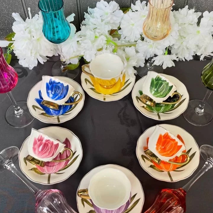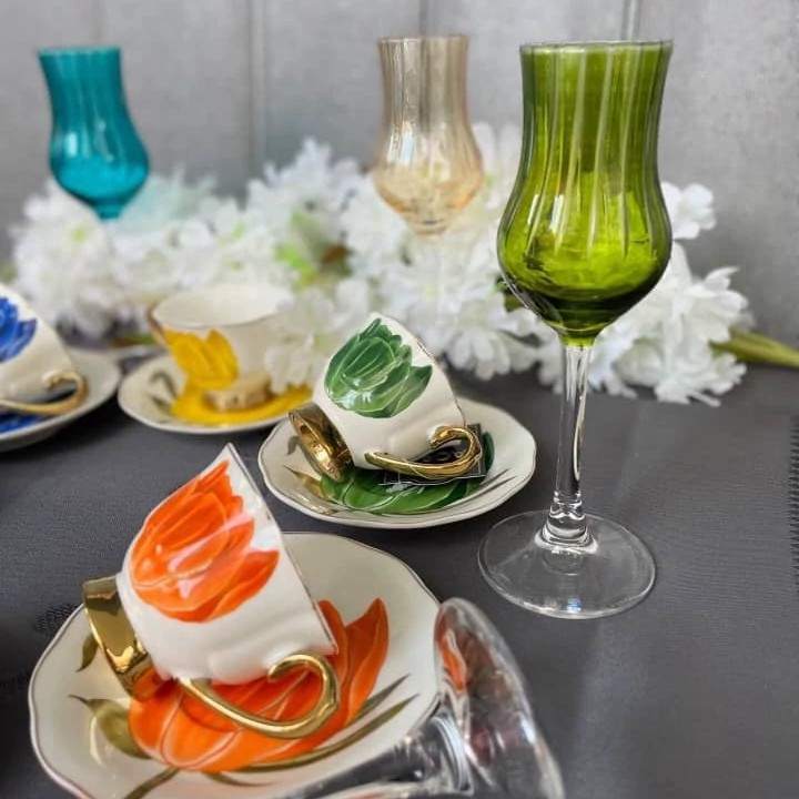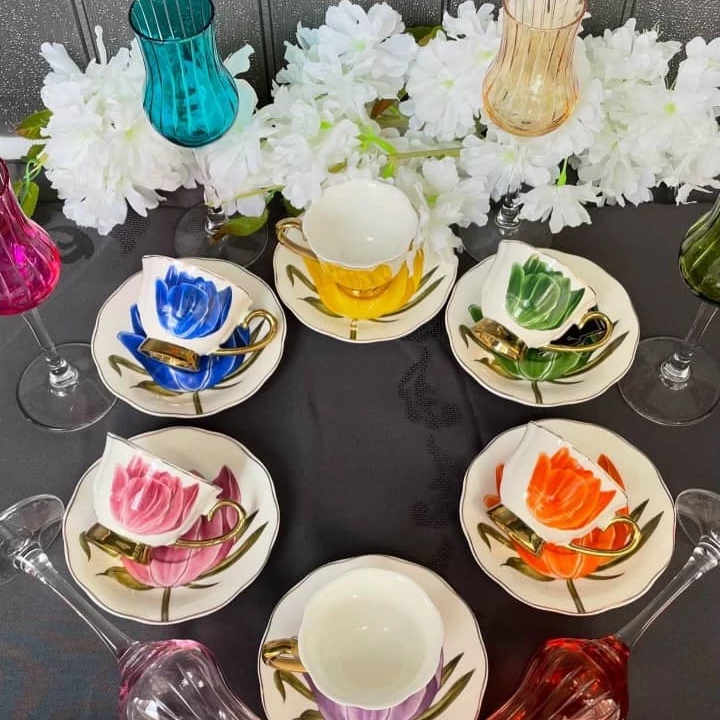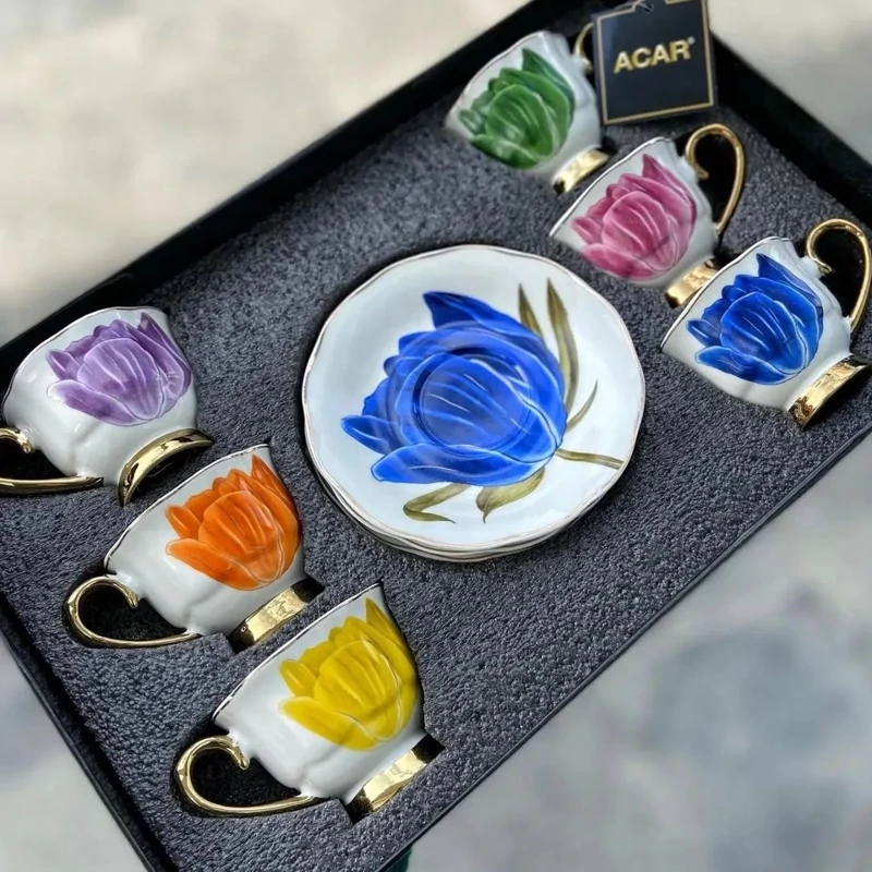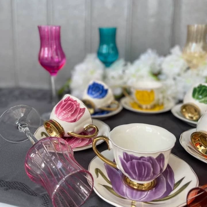 شارژ مجدد چای و قهوه خوری رنگی رنگی برند Açar ترکیه 🇹🇷 طرح Tiffany 🌸 جنس چینی استخوانی کیفیت عالی و رنگ ثابت قابل استفاده در فر و ماشین ظرفشویی هر دست بصورت 6 رنگ میباشد ❌تضمین سلامت کالا❌