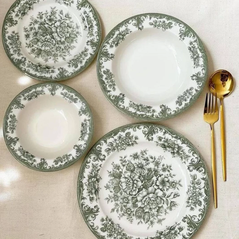 سرویس شش نفره بیست وچهار پارچه محصول آجار ترکیه جنس پرسلن 6عدد بشقاب/6عدد میوه خوری/6عدد خورشت خوری/6عدد کاسه موجود در دو رنگ سبز و آبی