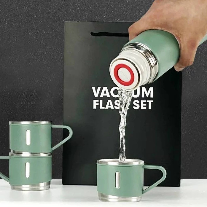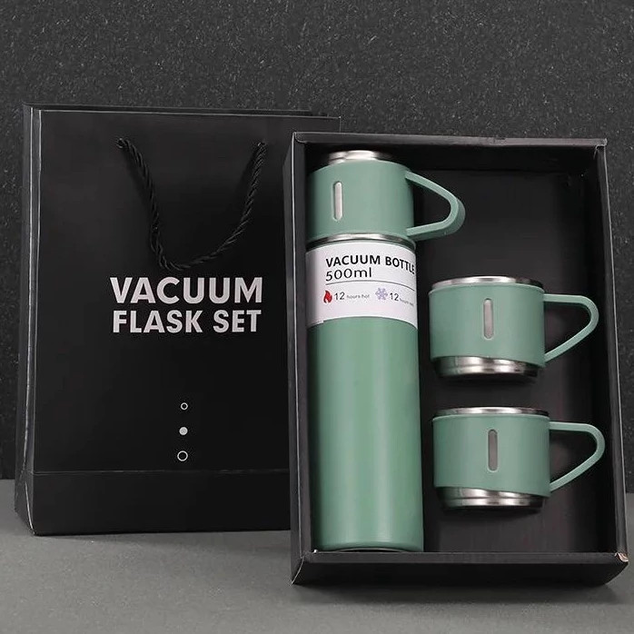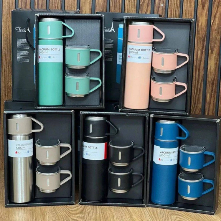 ست فلاسک سرد و گرم همراه فنجان محصول وارداتی درجه یک(کیفت عالی) 12 ساعت گرم 24 ساعت سرد همراه سه تا فنجان