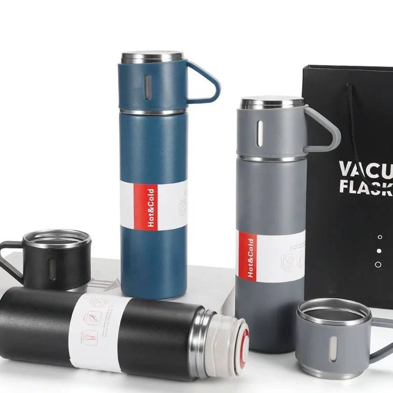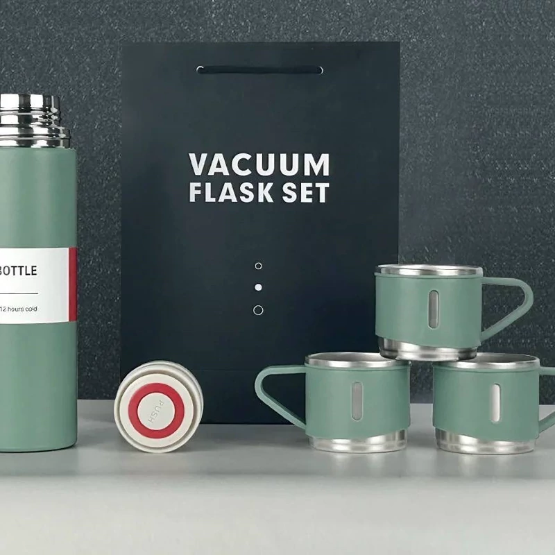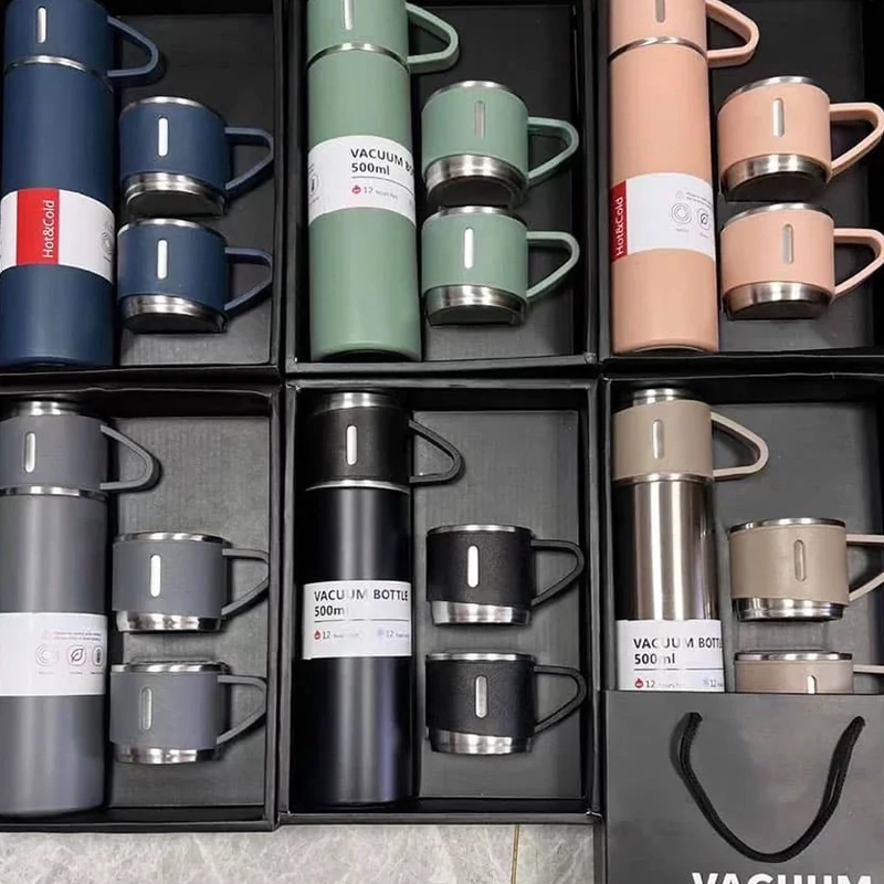 ست فلاسک سرد و گرم همراه فنجان محصول وارداتی درجه یک(کیفت عالی) 12 ساعت گرم 24 ساعت سرد همراه سه تا فنجان