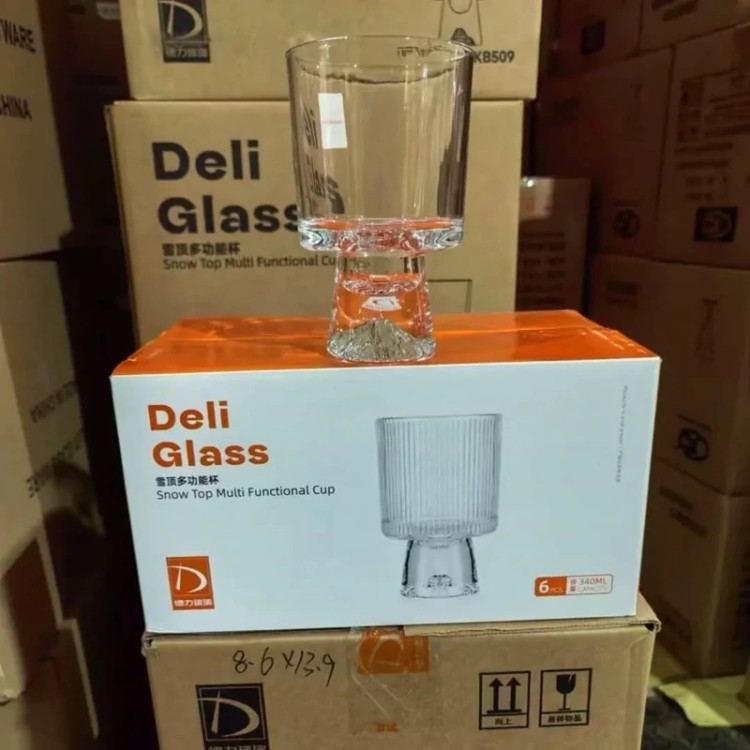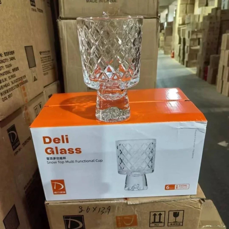 دسرخوری پایه دار سایز بزرگ محصول درجه وارداتی deli glass گنجایش 340 میلی موجود 3 طرح پک6عددی