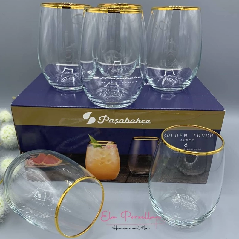 لیوان لب طلای AMBER محصول pasabahçe ترکیه حجم : 570 cc ارتفاع : 12 cm قطر : 7,2 cm 6عدد